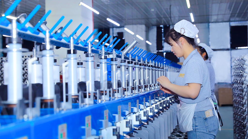 浙江义乌生产总部: 建筑面积18万平方米,以PA6为原料产品为主,涵盖高端超细旦锦纶,锦氨空气包覆纱,锦氨机械包覆纱,弹力丝,合股纱,年产能超5万吨。